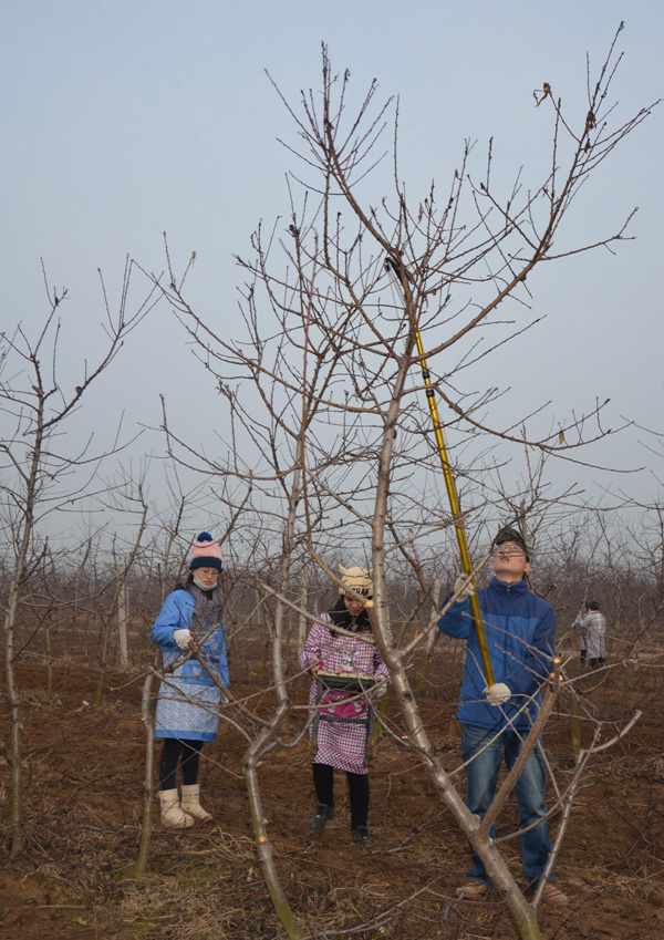 院长冯建灿便带领着果树系主任陈延惠教授等直奔南阳社旗学生冬剪实习基地,看望奋战在冬季修剪一线的百余名师生,为师生送去圣诞前夜的平安果。