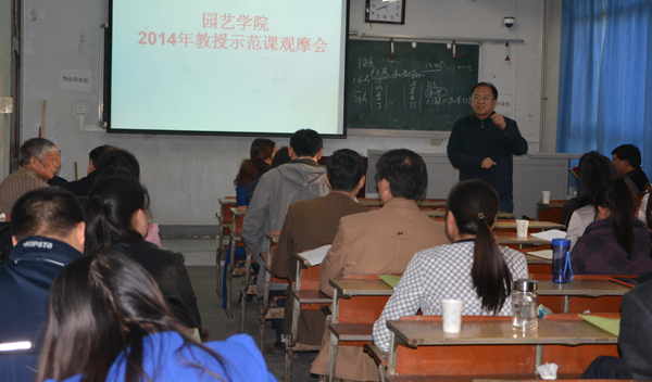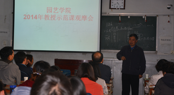 全体教职工和部分学生代表参加了观摩会,教授示范课观摩活动由果树系陈延惠教授、蔬菜系王吉庆教授主讲,院党委书记耿超明主持。
