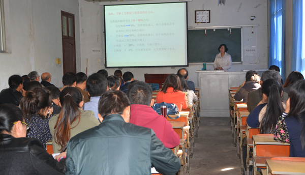 随后,陈延惠教授向全体参会人员讲授了理论性较强的《园艺植物遗传学》的基因定位章节,陈教授通过用两点测验法和三点测验法测定不同性状的基因是否连锁以及连锁基因之间的距离的过程和方法介绍,明确了两个测定方法的优、缺点和在现实中的应用。课程讲授逻辑性强,知识点环环相扣,再加上陈教授对授课内容烂熟于心,讲课时语速不紧不慢,举止有条不紊,而且声音柔和且极具亲合力,致使课程内容很容易被听者理解和接收,达到了较好的教学效果。