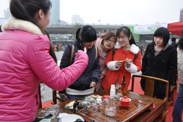 2013年3月26日上午,在河南省人民大会堂举行了文新茶叶公司第二届春茶节。纸牌游戏在线 抓住对茶学专业新生进行专业教育的好机会,由刘建军老师联系,张惠梅老师和茶博士梁丽云老师带队,组织茶学专业2012级新生到现场参观学习。在现场从鲜茶叶炒制到烘干,从新茶包装到泡制品茶,还有倒茶技艺、茶道表演,同学们都仔细观察,不耻下问,仔细体验,表现出极高的兴趣和学习热情。