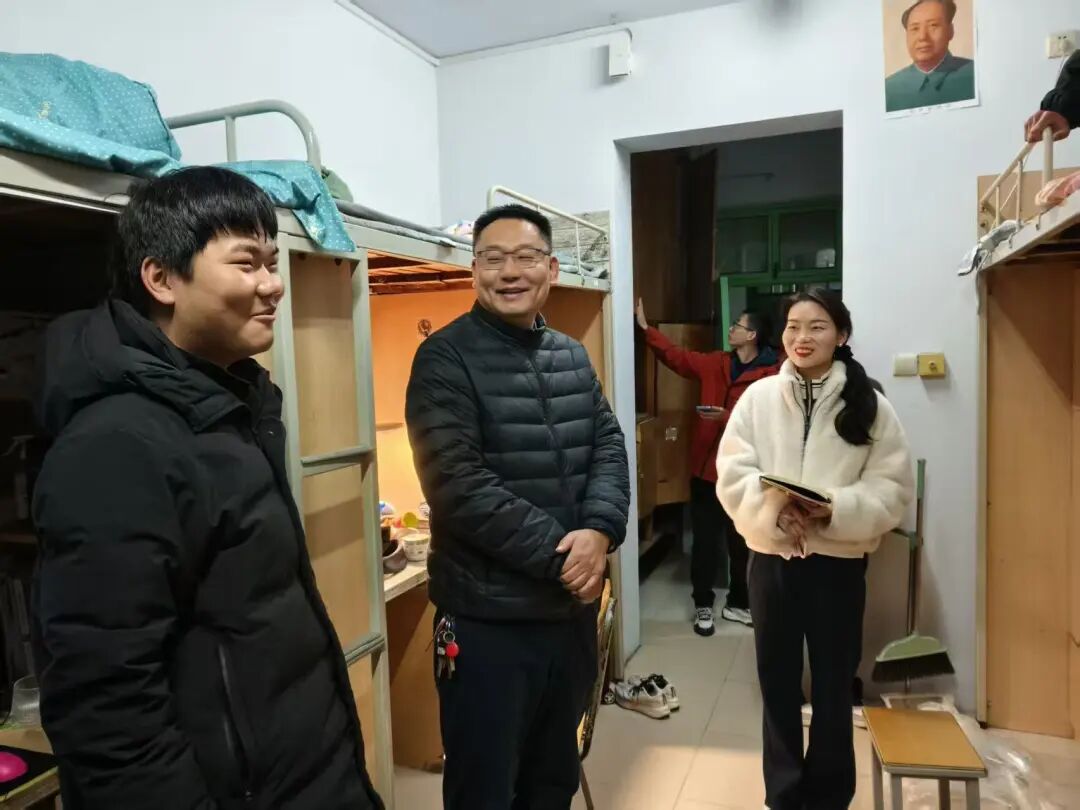 走访中,老师们与同学们亲切交流,细致询问大家寒假生活、返校适应情况及新学期学习规划,耐心倾听学习、生活、科研等方面的需求。同时实地查看宿舍环境卫生与安全状况,叮嘱同学们返校后及时给家人报平安,规范用电、提高反诈意识,遵守校纪校规,注意防寒保暖与身心健康。学院领导勉励同学们迅速调整状态,树立明确目标,勤学笃行、锐意进取,共同营造文明和谐的宿舍氛围。