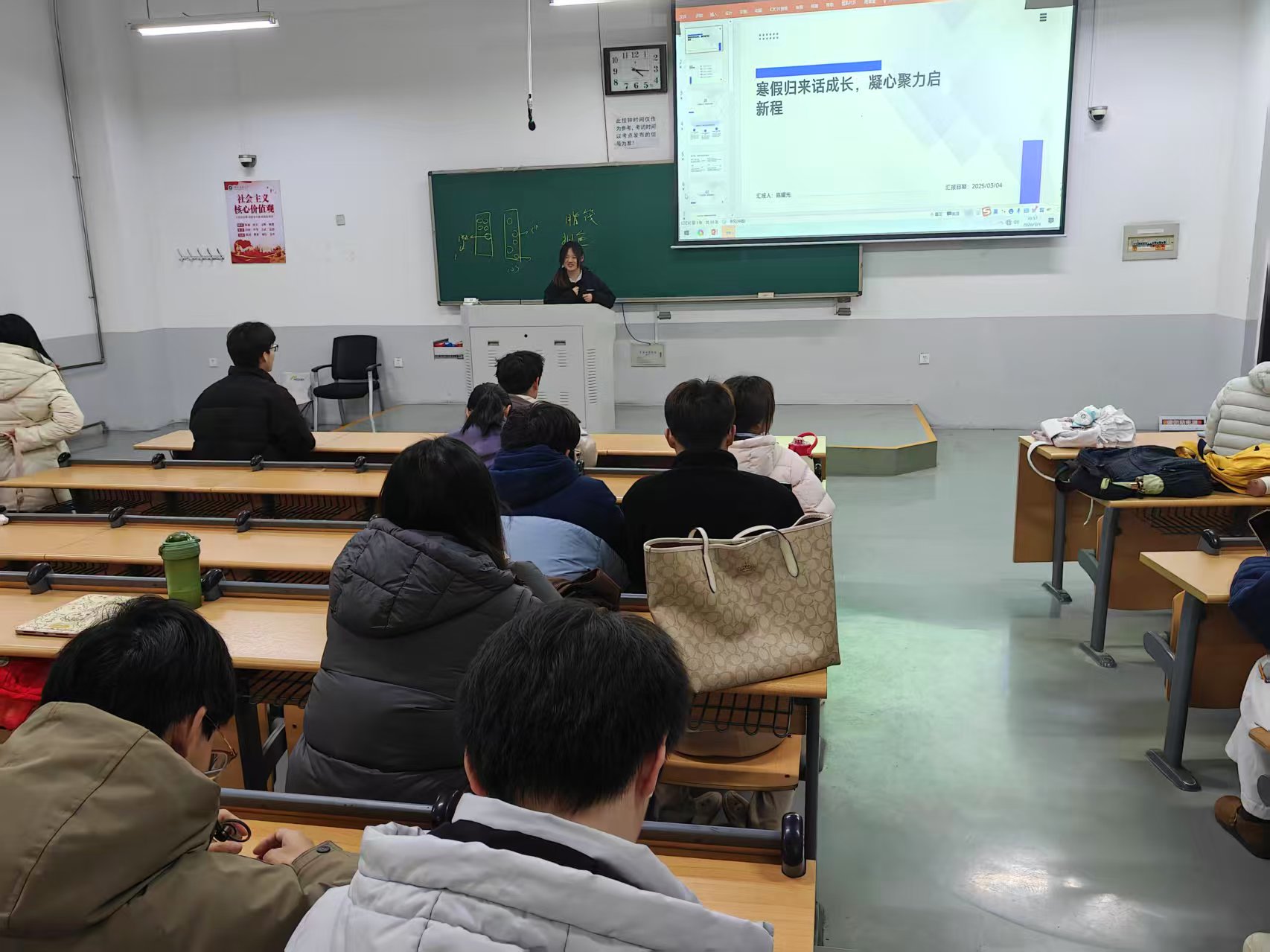 以“寒假归来话成长,凝心聚力启新程”为主题,面向各年级各班召开班会。学院辅导员、班主任深入各班,与本班同学共话成长、共启新程。