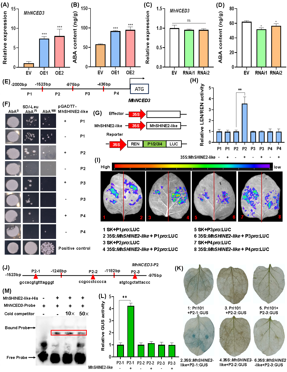 Figure 1.MhSHINE2-like binds totheMhNCED3promoterto activateitstranscription.