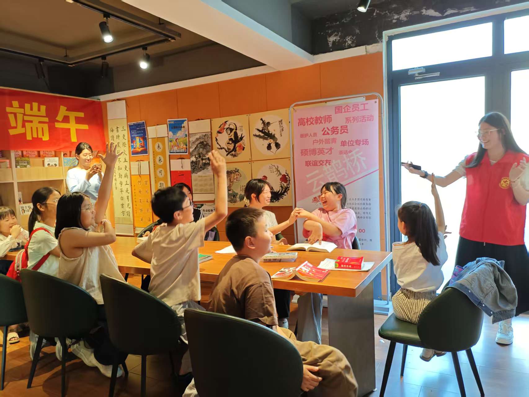 志愿者协会的志愿者们以生动活泼的语言,声情并茂地解说节日起源、讲述民间传说,互动式古诗诵读等形式,带领青少年沉浸式感受中华传统节日的深厚底蕴,现场互动频频,洋溢着欢声笑语。